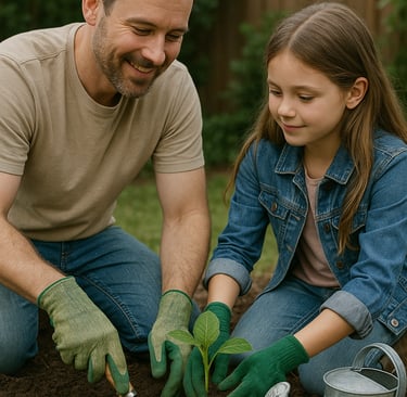 You’re kneeling in the soil together, the sun warming your backs. Your child gently drops a seed into the earth and looks up with a proud smile.