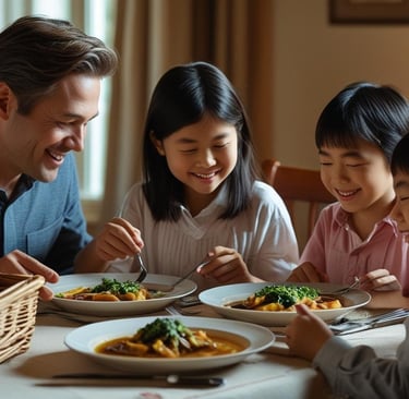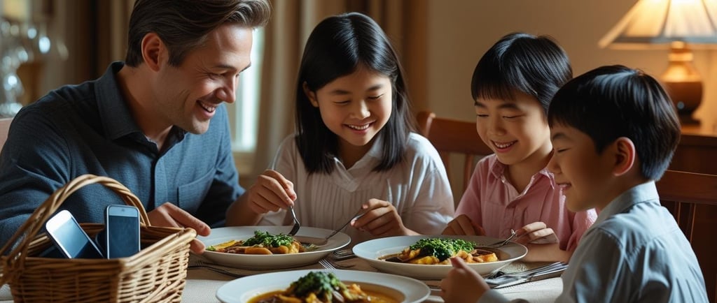 The scent of roasted vegetables fills the air. Plates clink softly as everyone sits down. Your phone is tucked away, their tablet is charging in the other room, and for the first time all day, there are no screens.